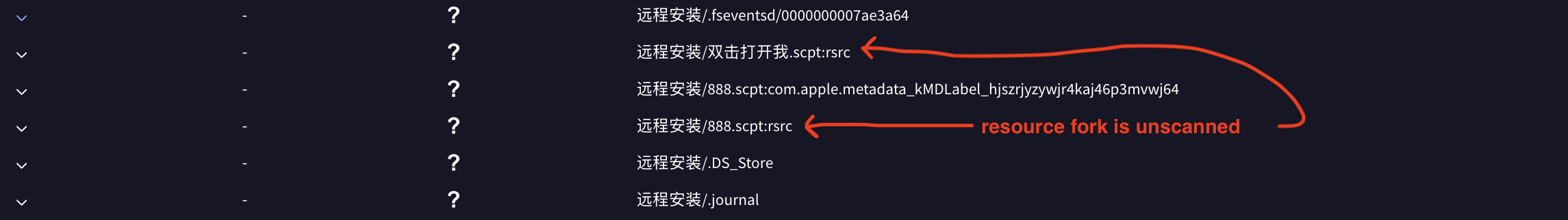 And in this example, the resource forks were not scanned (well they didn’t have anything)