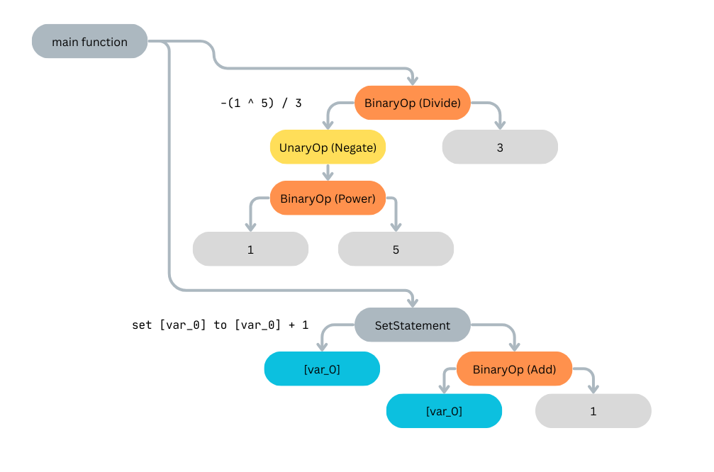 Of course, the code in the tool is more complicated than this. If the AST is defined and built properly, this should be one of the easier parts of the problem to code.